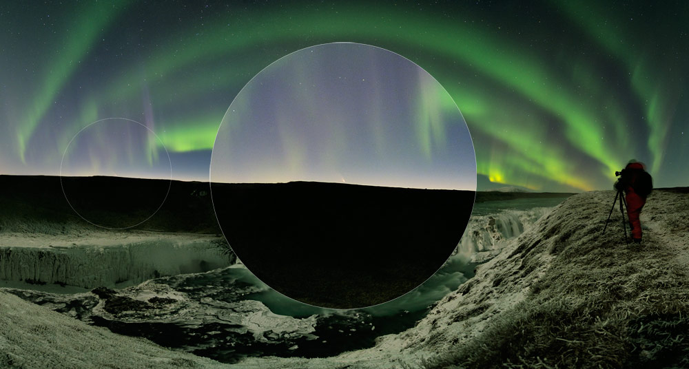 Abbildungsmaßstab: Am 21. März war Komet PanSTARRS etwa 180 Millionen Kilometer entfernt. In dieser Entfernung ist dieses Bild fast 4 Millionen Kilometer groß.